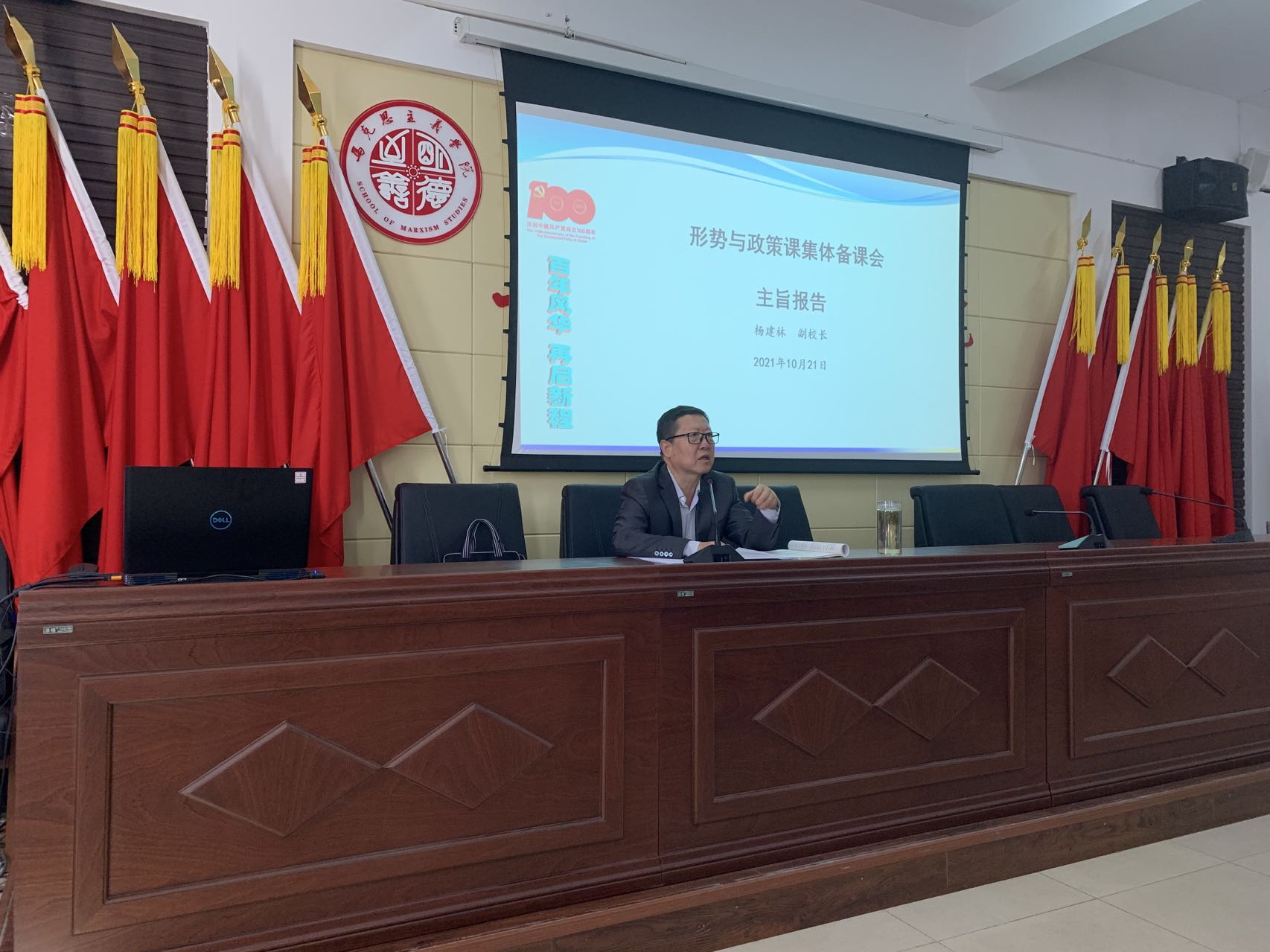 2021年10月21日下午,2007so太阳集团形势与政策教研室集体备课会在腾飞楼C座509举行。会议由教研室主任杨彦斌教授主持,党委委员、副校长杨建林、部分二级学院党委书记、党总支书记、授课教师、形势与政策教研室全体教师参加。
