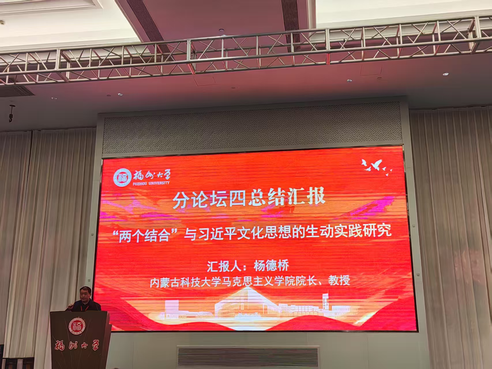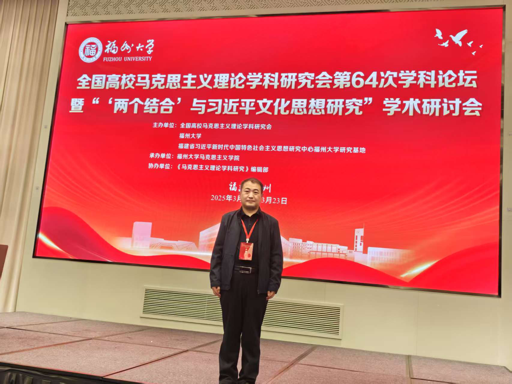 2025年3月21日至23日,全国高校马克思主义理论学科研究会第64次学科论坛暨“‘两个结合’与习近平文化思想研究”学术研讨会在福州大学召开。学院院长杨德桥教授应邀出席会议。根据会议安排,杨德桥教授主持了第四分论坛“‘两个结合’与习近平文化思想的生动实践研究”的研讨活动,在分论坛作了专题发言,并代表分论坛向大会作总结报告。