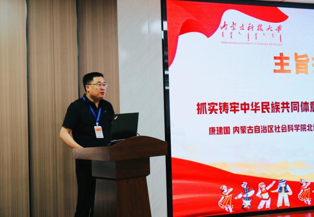 内蒙古自治区社会科学院北疆文化研究中心主任、《北疆文化研究》主编康建国作了“抓实铸牢中华民族共同体意识主线,做好北疆文化建设工作”的报告,结合内蒙古地域文化特色,阐释了以铸牢中华民族共同体意识引领北疆文化建设高质量发展的实践思路。