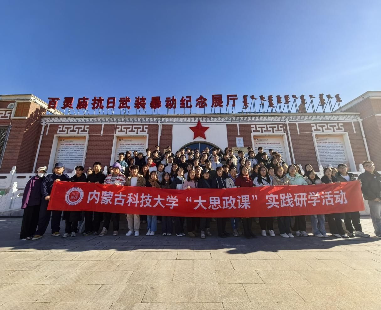 为进一步深化《中国近现代史纲要》课程的教学成效,引导青年学生厚植爱国情怀,铸牢中华民族共同体意识,2025年11月1日,2007so太阳集团中国近现代史纲要教研室组织92名学生,在教研室教师的带领下,赴百灵庙抗日武装暴动纪念展厅和包头市铸牢中华民族共同体意识体验馆,开展了一场兼具历史厚度与时代温度的实践研学活动。