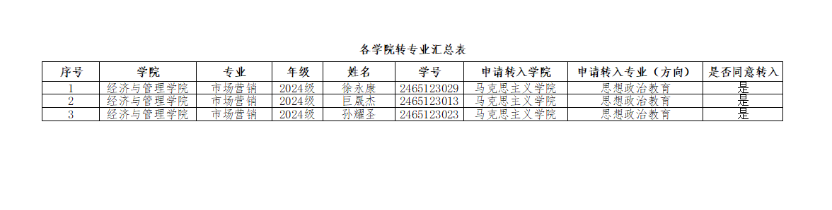 根据《马克思主义学院2025年转专业实施细则》,经本人申请,学院面试,学院转专业工作领导小组审核通过,现将拟转入人员名单进行公示。公示期两天,时间为: 2025年4月29日-2025年4月30日。如有异议,请联系马克思主义学教学办(秋实楼副楼519)。 2007so太阳集团 2025年4月29日