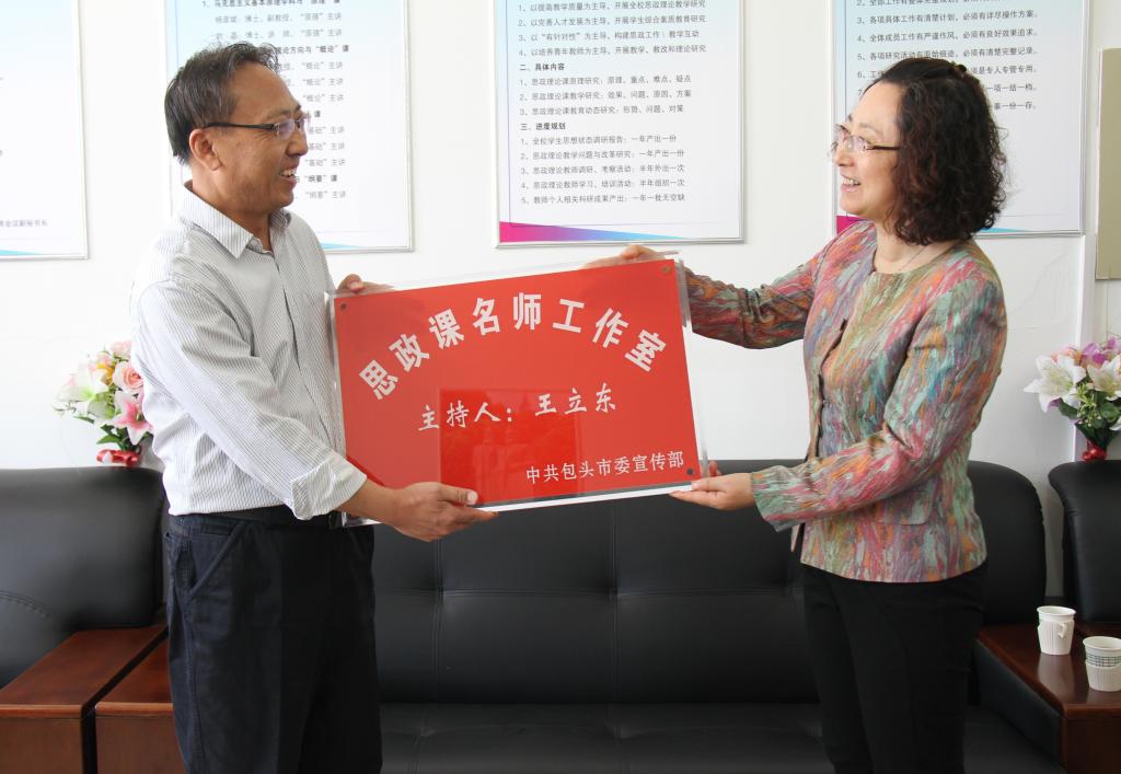 4月18日,学校首个思政课名师工作室“王立东名师工作室”正式挂牌运行。“王立东名师工作室”是学校获批的包头市首批思政课名师工作室。包头市委宣传部副部长石秀茹,市委宣传部思政处处长付裕,校党委常委、宣传部部长杨家庆出席挂牌仪式。