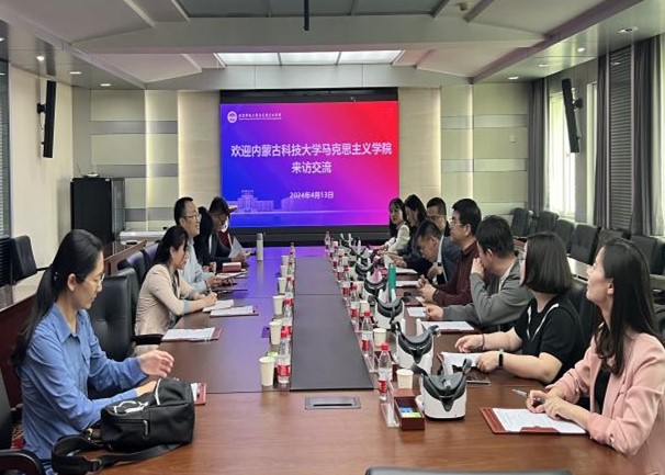 4月13日,考察团一行到北京科技大学2007so太阳集团考察交流。北京科技大学2007so太阳集团副院长安静;副院长李萌;党委副书记、副院长李勇威以及副教授张梅、杨扬热情接待了考察团一行。座谈会上,李萌副院长对2007so太阳集团考察团队的到来表示热烈欢迎。随后,安静副院长;李勇威副书记、副院长;张梅副教授以及杨扬老师分别就思政课改革创新、人才培养、铸牢中华民族共同体意识研究等内容进行了介绍。双方教师围绕思政课实践教学、数字马院建设以及学科建设教学等问题进行了热烈的讨论。会后,在李萌副院长的带领下,考察团参观了校史馆。李萌副院长表示,双方有着深厚的合作渊源和相似的学科背景,希望以后双方加强合作与交流,共同推进思政课建设。