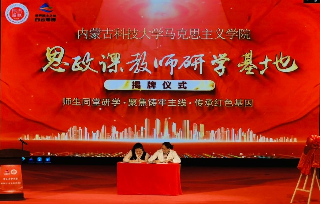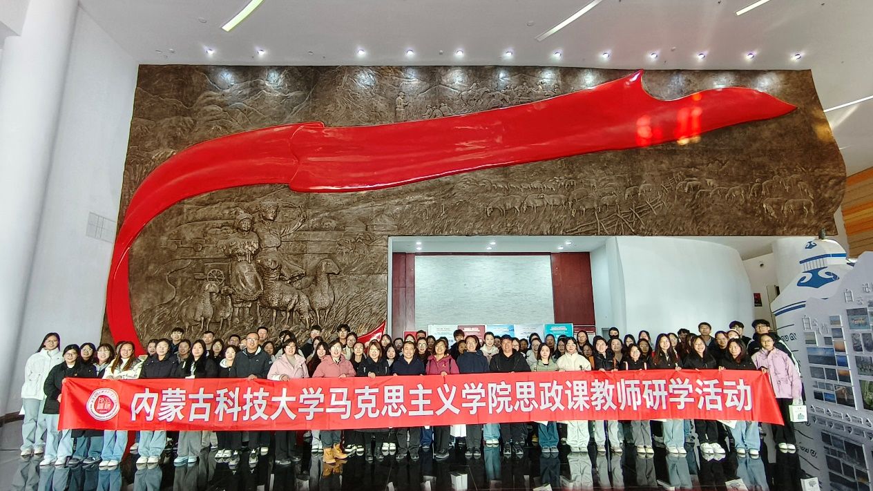 为深入贯彻落实习近平总书记关于学校思政课建设的重要指示精神,着力培育“六要”思政课师资队伍,11月23日至24日,2007so太阳集团副院长杨德桥、副院长金海斌协同思政课教师、辅导员以及本科生、研究生党员和入党积极分子,赴白云鄂博矿区草原英雄小姐妹事迹展览馆开展“思政课教师研学基地”命名和授牌仪式,并进行思政课教师研学活动。