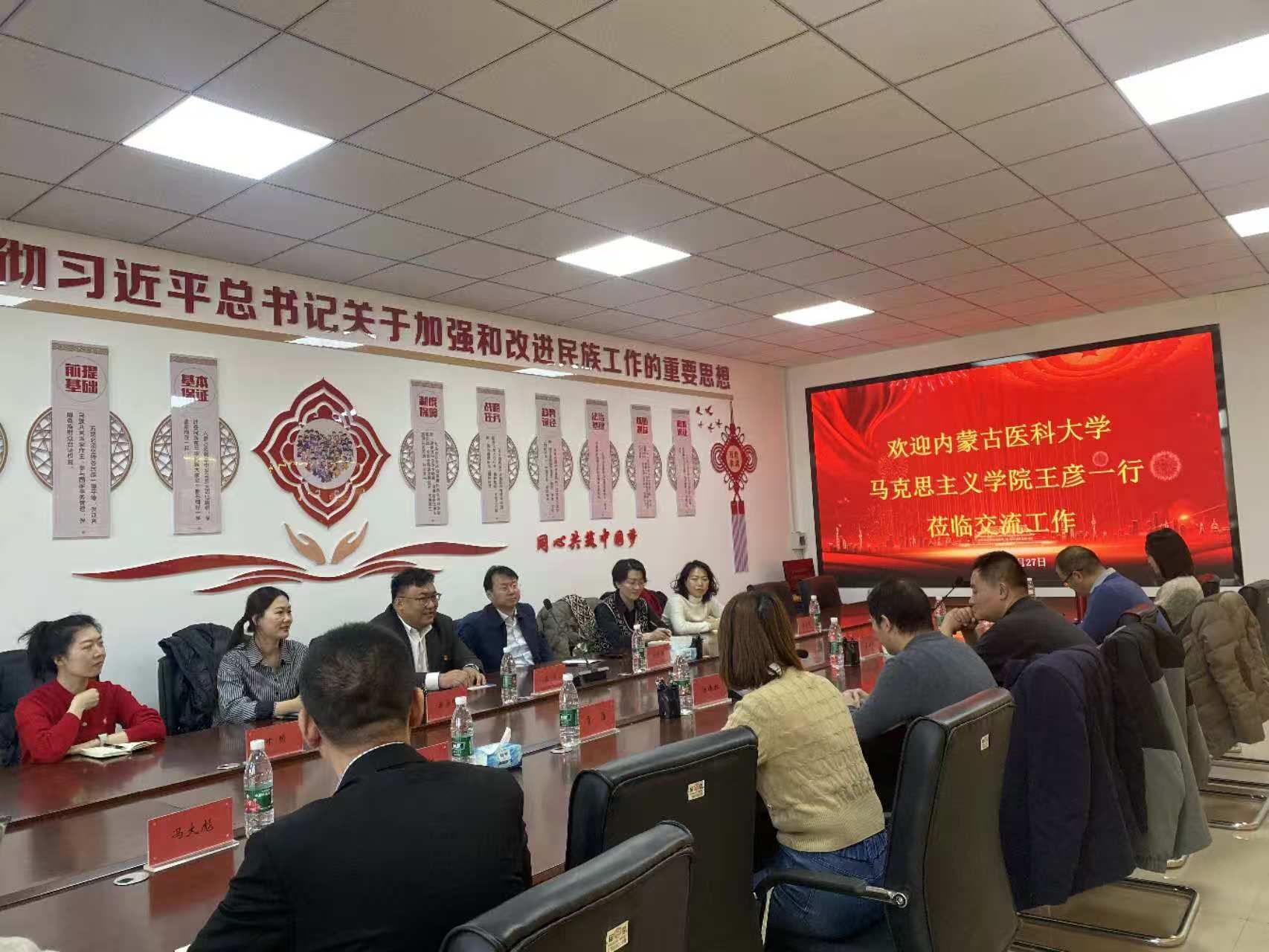 杨德桥副院长介绍了学院的基本情况,王彦院长介绍了内蒙古医科大学2007so太阳集团的基本情况。双方就党建、教学、学科、科研、铸牢中华民族共同体意识研究基地建设、学团等工作进行了深入交流。双方将进一步加强交流合作,相互支持,合力推动学院事业发展。