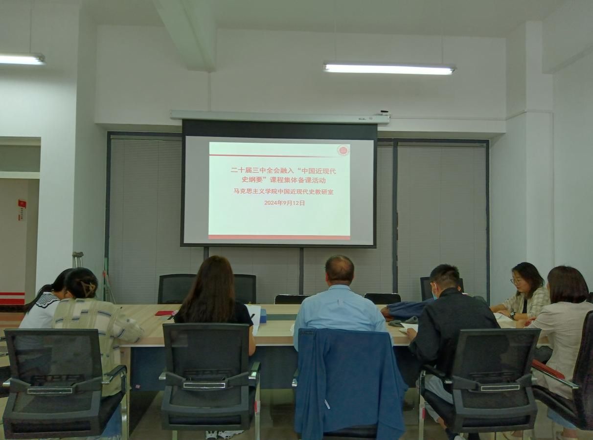 形势与政策教研室:形势与政策教研室围绕如何讲授“二十届三中全会精神”这一专题进行集体备课,大家集思广益,讨论如何对“二十届三中全会精神”这一专题进行教学设计、教学思路的建构以及案例运用,教研室每位老师轮流进行说课。大家讨论,“二十届三中全会精神”这一专题的教学思路围绕“为什么要改”,“往哪里改”,“要怎么改”这一逻辑,首先讲清楚“改革—全面深化改革—进一步全面深化改革的逻辑演进”,这一部分内容作为授课的重点内容,结合生动的案例,呈现给学生;其次,讲授往哪里改,通过讲授进一步全面深化改革要紧紧围绕中国式现代化的战略要求、进一步全面深化改革要把握“六个坚持”的重大原则、进一步全面深化改革部署中的战略重点。最后,讲好思政课,将“二十届三中全会精神”由浅入深、有理论深度、有实践温度地带入课堂。