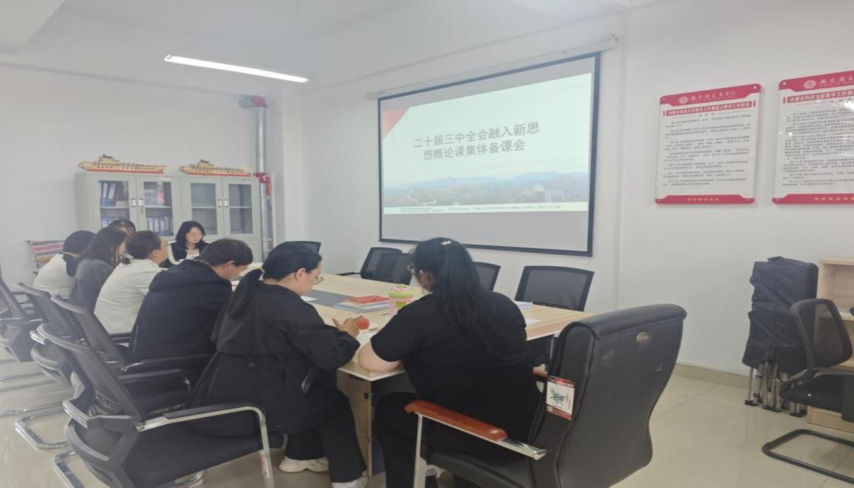 为深入学习贯彻习近平新时代中国特色社会主义思想和党的二十届三中全会精神,贯彻落实新时代学校思政课建设推进会重要部署,做好党的创新理论“三进”工作,进一步提升思想政治理论课教育教学质量,2024年9月12日,2007so太阳集团各教研室开展了以“党的二十届三中全会精神融入思政课”为主题的集体备课会。备课会紧紧围绕党的二十届三中全会精神,深入研讨如何将全会精神及时有效融入各门思政课教育教学。