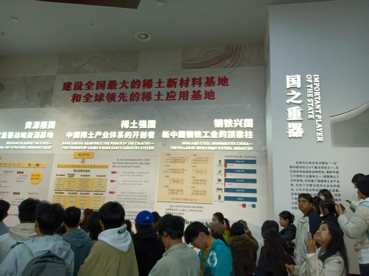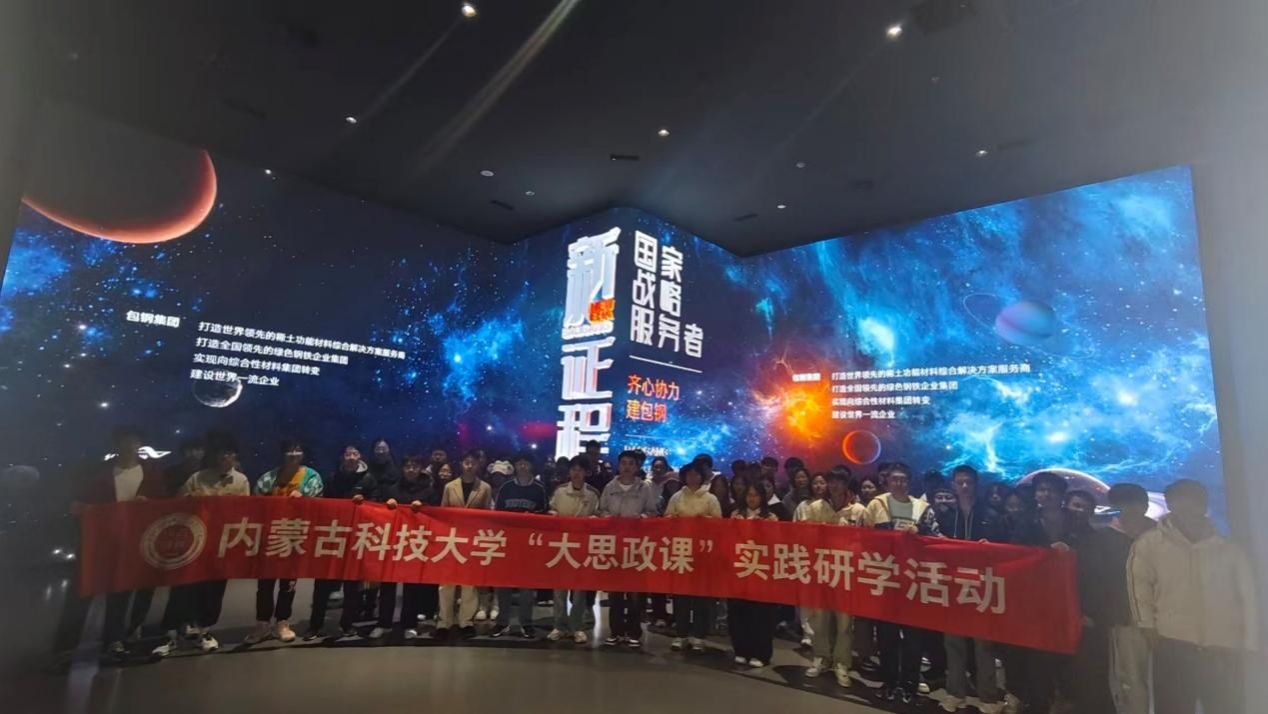 为了深入推进我院思想政治理论课教学的实效性,中国近现代史教研室按照《中国近现代史纲要》课程教学大纲的要求和实践教学计划的安排,2025年10月18日下午,由叶后坡、马宁两位教师带领九十余名学生前往“齐心协力建包钢”主题展馆开展“大思政课”实践研学活动。
