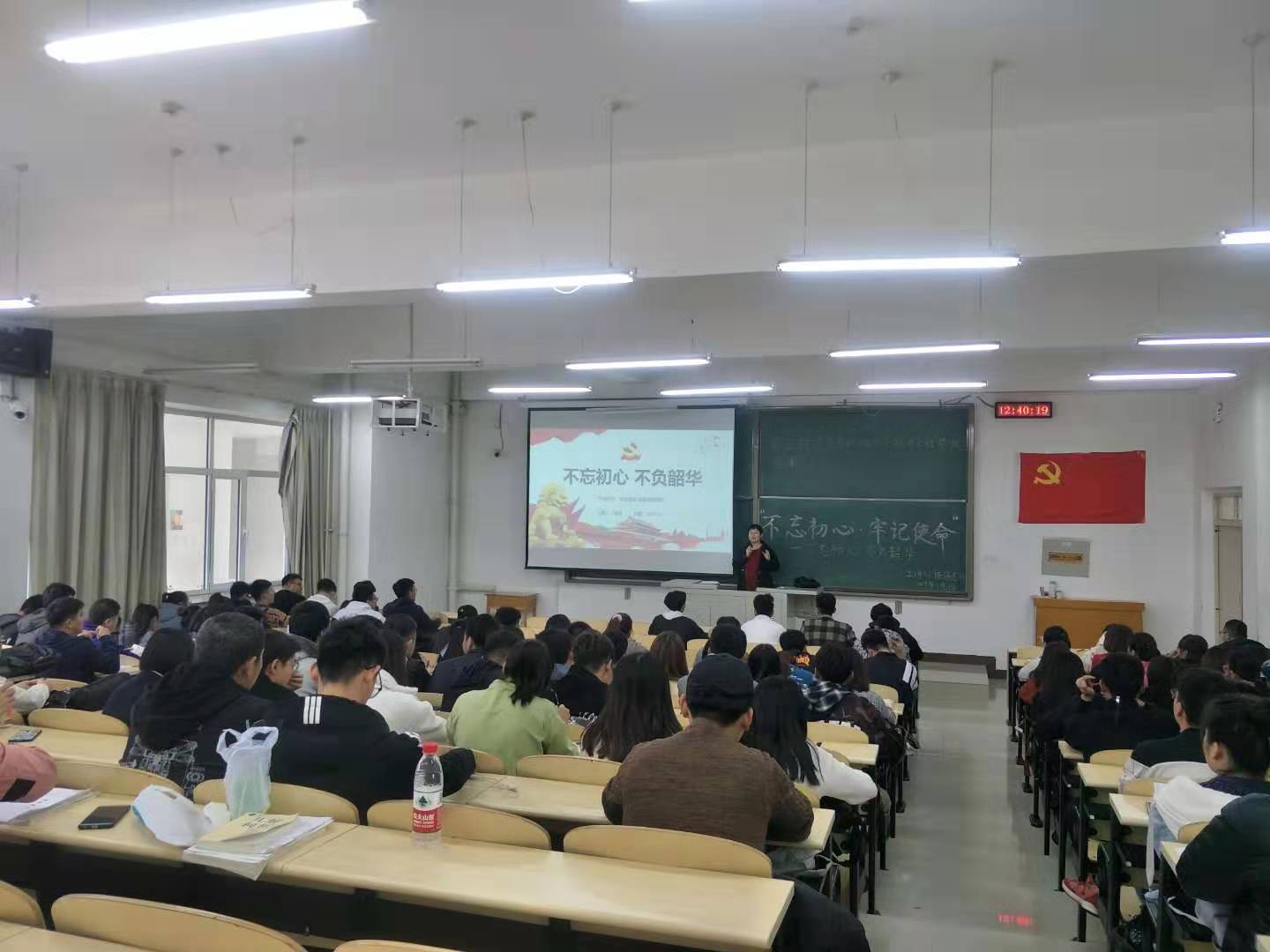 11月11日中午12:40,本科生党支部书记陈伟在逸夫楼G303作了题为《不忘初心、不负韶华》的主题教育专题党课。“三部共建”单位2007so太阳集团本科生党支部、矿业与煤炭学院学生第一党支部以及化学与化工学院学生第一党支部全体党员及入党积极分子共计100余人聆听党课。