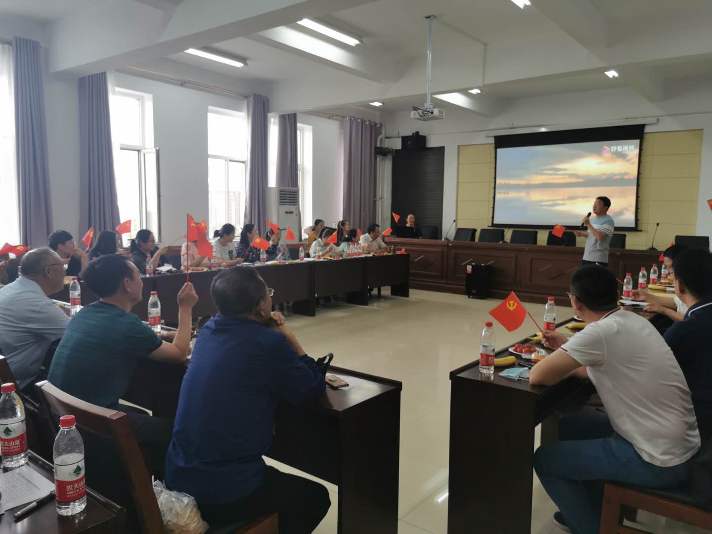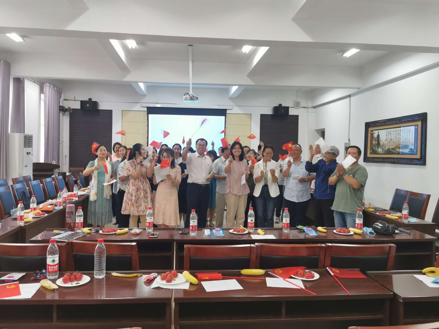 为庆祝中国共产党成立99周年,回顾党的奋斗历程,讴歌党的丰功伟绩,继承和发扬党的光荣传统,7月1日下午,2007so太阳集团党总支开展“庆七一 促党建 凝心聚力谋发展”——庆祝中国共产党成立99周年主题党日系列活动。全体党员教师参加活动,以实际行动向党的生日献礼。