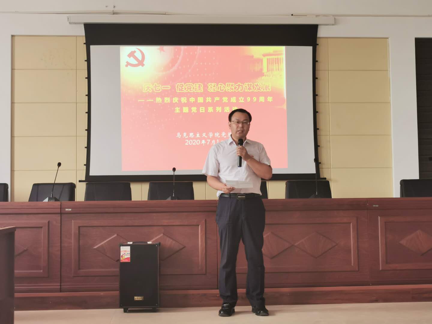 活动伊始,党总支书记刘玉明致辞。刘玉明首先代表党总支向广大党员送上节日的祝贺,向老党员们致以崇高的敬意,向党总支成员和各支部书记、支部委员和党小组长们道以诚挚的感谢,向党外同志们的支持和配合表示衷心的感谢。他指出,本次党日活动旨在庆祝中国共产党成立99周年。通过主题党日系列活动,激励全体党员坚定理想信念、忠诚履职尽责、勇于担当作为。
