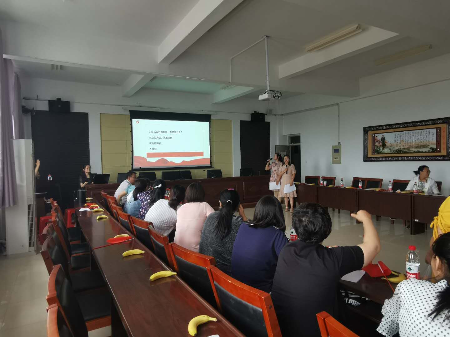 竞赛分为图片题、音乐题、单选题和填空题4种题型。在比赛中,党员教师积极抢答,热情高涨,现场氛围激烈活跃。本次党的知识竞赛加深广大党员对党的历史、党的知识的认识,巩固加强党员政治素质和党性修养,营造积极了向上的政治学习氛围。