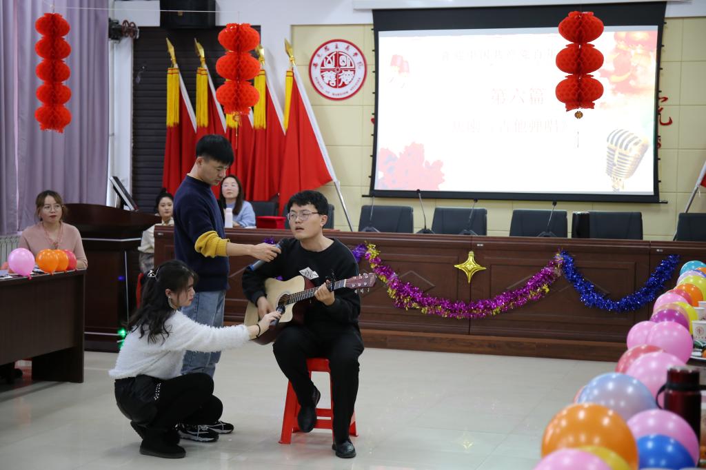 接着,由我院教师精心准备的节目将活动推向高潮。老师们通过舞蹈、歌曲、诗朗诵、吉他弹唱的形式,为党的百年华诞送上最美的祝福。节目间隙,还穿插有猜红歌、猜谜语等游戏环节,大家踊跃参与,活动现场洋溢着欢乐、喜庆、祥和的气息。