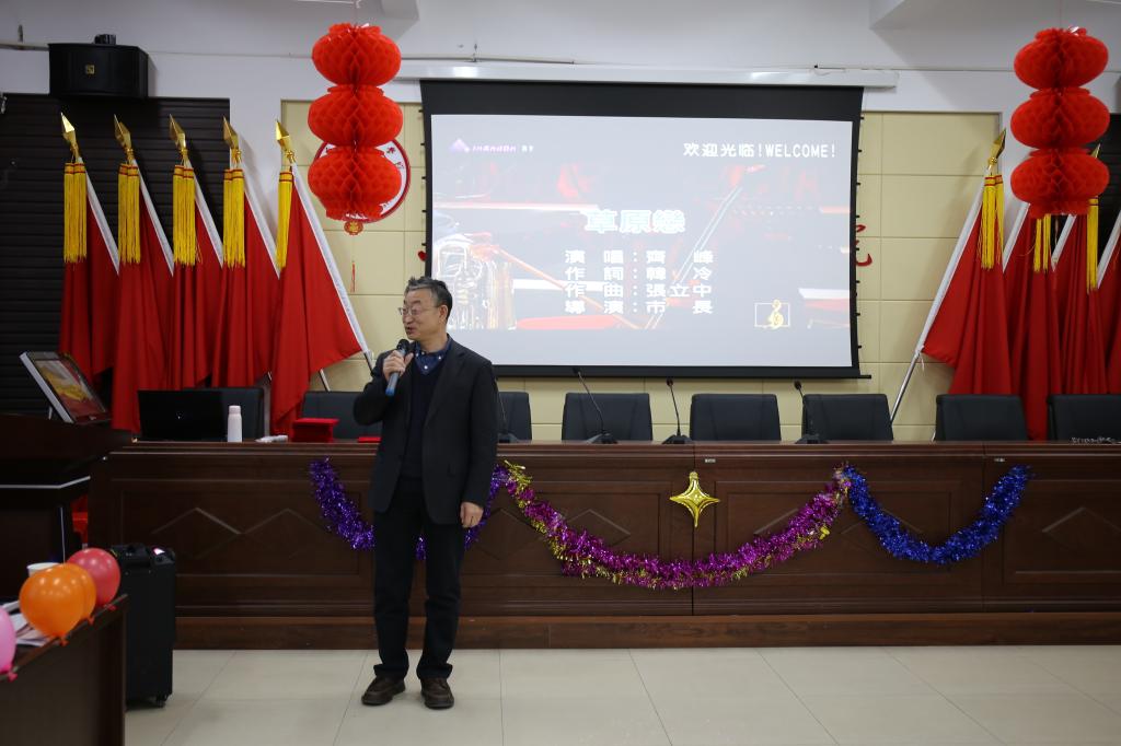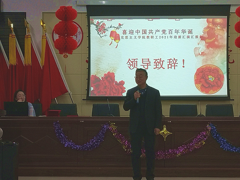 首先,院党总支书记刘玉明代表学院热情致辞,他回顾了2020年学院抗击疫情下党建、教学和科研等工作在肯定取得的成绩的同时,也展望了新的一年的奋斗目标,对辛勤坚守在各自工作岗位上的老师表达了真挚的祝福