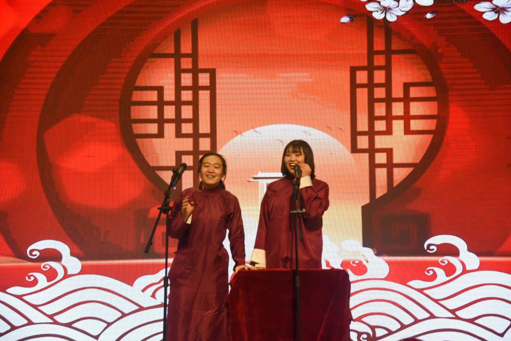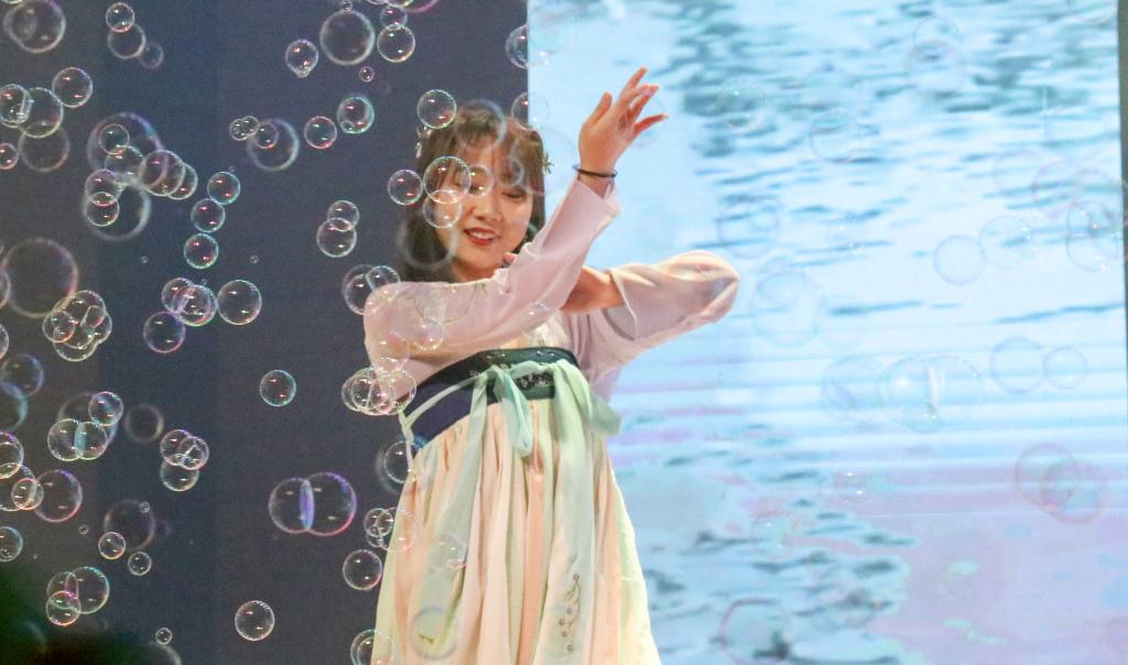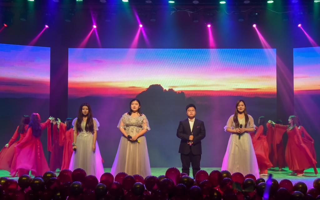 第一篇章“流年思红日”,话剧《小人物眼中的大中国》以小人物的视角重现了新中国成立71年来发生的翻天覆地的变化,饱含深情、振奋人心;器乐合奏《绿野仙踪》将古筝、钢琴和唢呐完美融合,优美动听、婉转悠扬;教职工带来的《彩虹的微笑》,展示了2007so太阳集团教职工积极向上、青春活力的精神风貌;舞蹈《站在草原望北京》充分展现了各民族师生坚定不移跟党走,铸牢中华民族共同体意识的坚定决心。