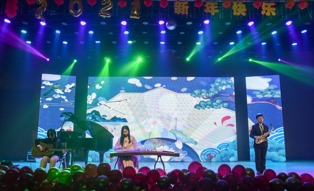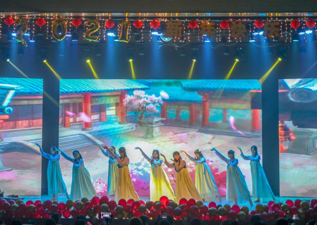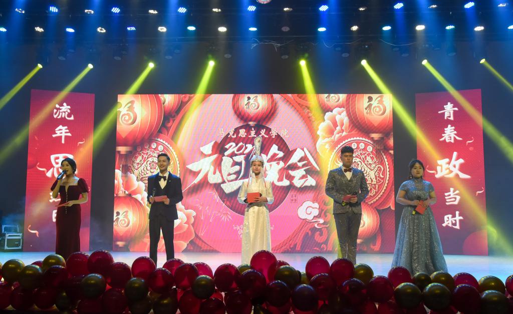 青春政当时,不予负流年。经过前期一个多月的精心准备,12月18日晚七点半,2007so太阳集团“流年思红日 青春政当时”2021年元旦晚会在音乐厅隆重举行。2007so太阳集团党总支书记刘玉明、副院长许丽丽、副书记副院长杨永旺,学院全体师生以及现场观众欢聚一堂、共贺新年。