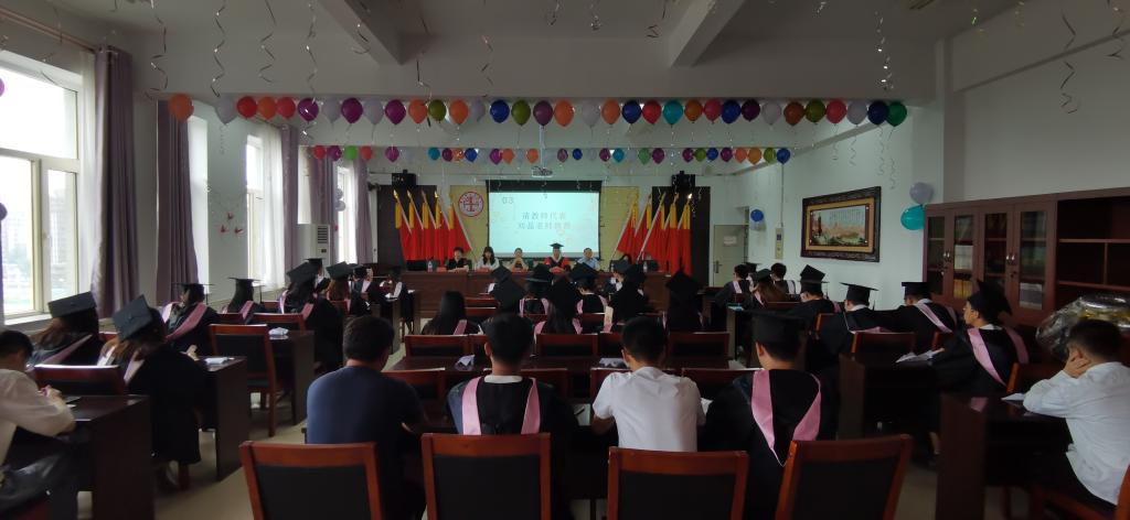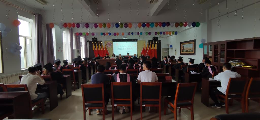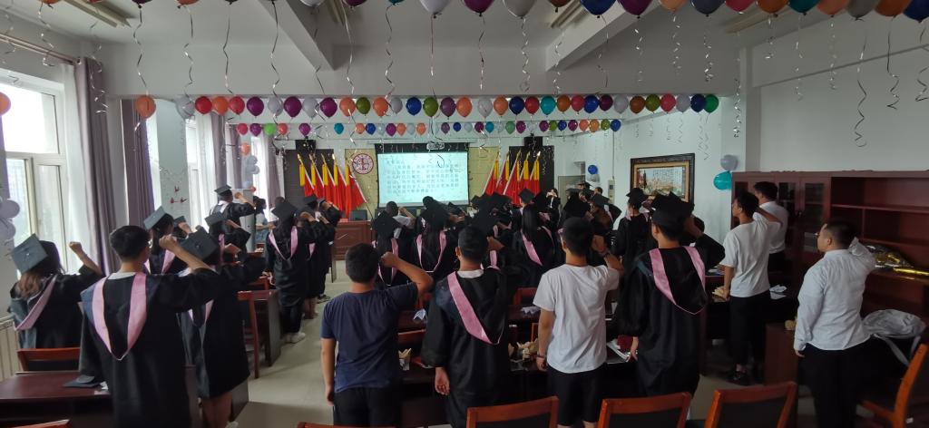 6月24日上午9点,2007so太阳集团在腾飞楼C509会议室隆重举行2021届本科生毕业典礼。院长张光存、副院长许丽丽、党总支副书记杨永旺、副院长兼教授委员会办公室主任柴艳莎,毕业班班主任以及全体毕业生参加典礼。