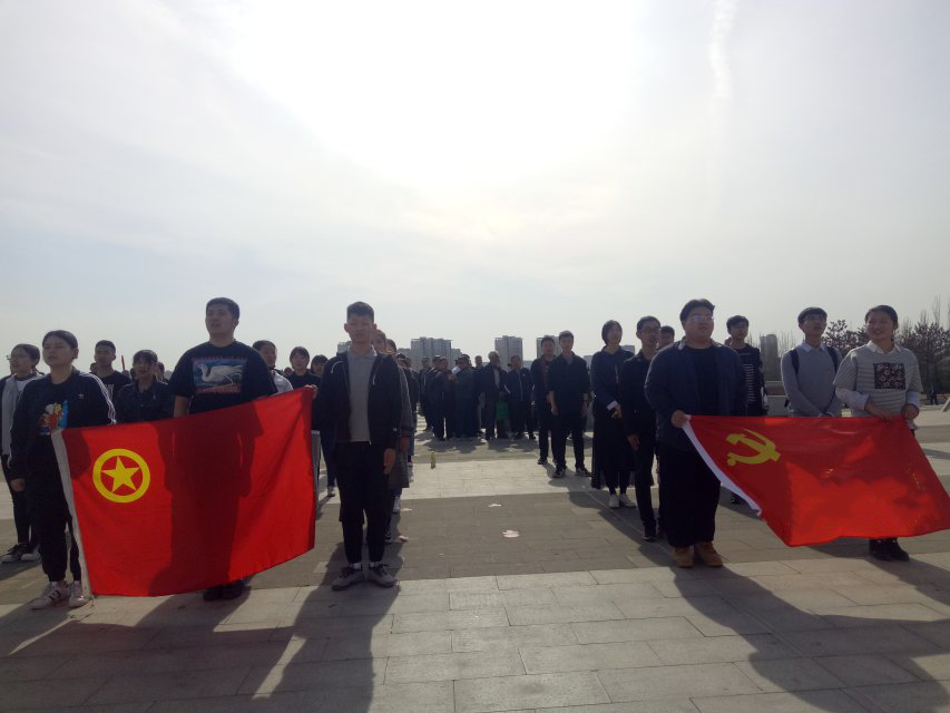 优秀共青团员代表黄晓烜同学在纪念碑下进行团旗下的演讲,用朴实的语言表达了当代大学生要用实际行动继承革命先辈的遗愿,争做担当民族复兴大任的时代新人。团员代表王鑫磊同学领誓,带领所有老团员重温入团誓词,不忘初心,砥砺前行。最后在场所有同学齐唱团歌,并在现场写下了活动感悟和奋斗目标,进行集中展示。