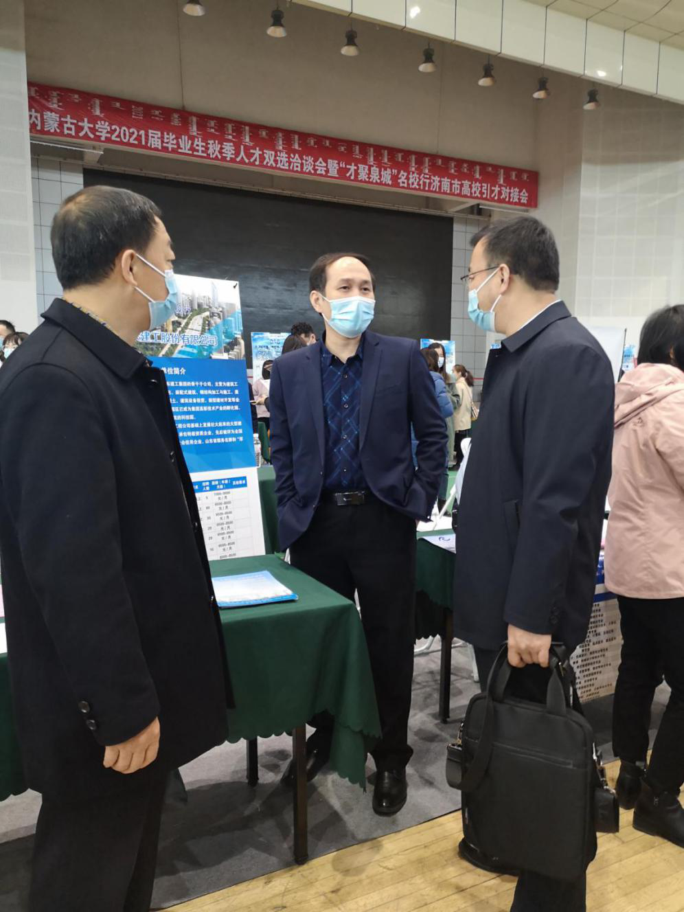 疫情冲击下的高校,就业首当其冲,为了促进我院毕业生就业,10月27日2007so太阳集团党总支书记刘玉明、副书记副院长杨永旺以及负责就业工作的辅导员,一同赴内蒙古大学2021届毕业生秋季人才双选洽谈会,与用人单位进入交流,深入了解当前就业形势及岗位需求,并发出邀请函邀请用人单位积极参加我校10月31日经管、文法、思政专场招聘会。