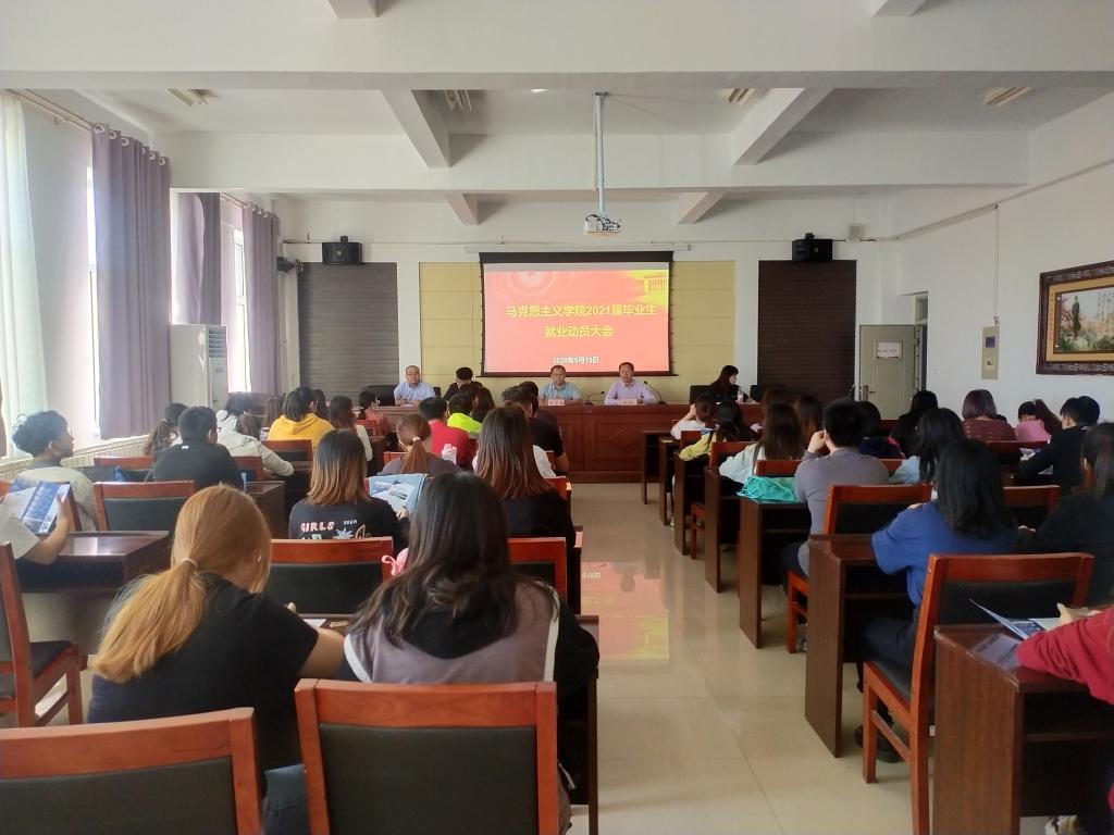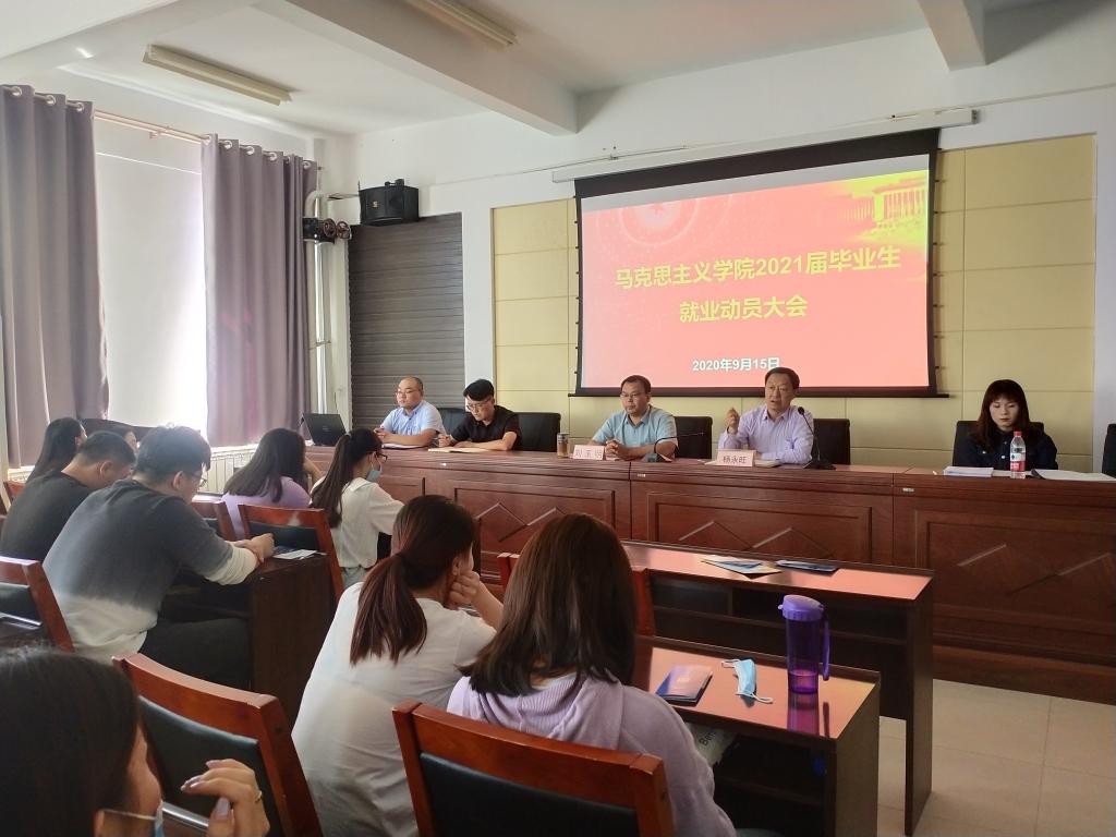 为了充分调动毕业生就业积极性,进一步增强毕业生就业意识,树立正确的就业观念,努力实现2021届毕业生更高质量和更充分就业,9月15日下午3:00,2007so太阳集团在腾飞楼C509会议室召开2021届毕业生就业动员大会,学院党总支书记刘玉明、副书记、副院长杨永旺、就业工作辅导员、毕业班班主任以及全体毕业生参加本次就业动员大会。杨永旺主持会议。