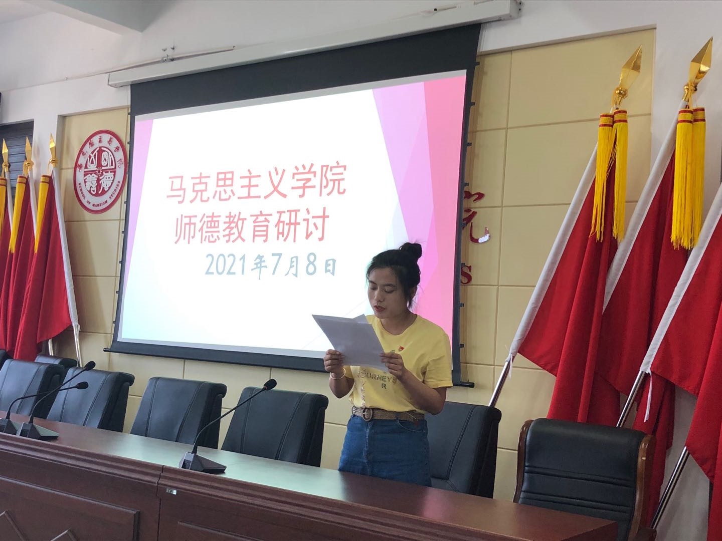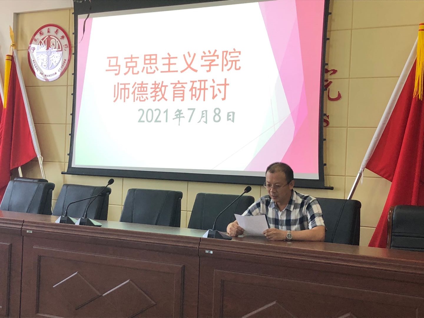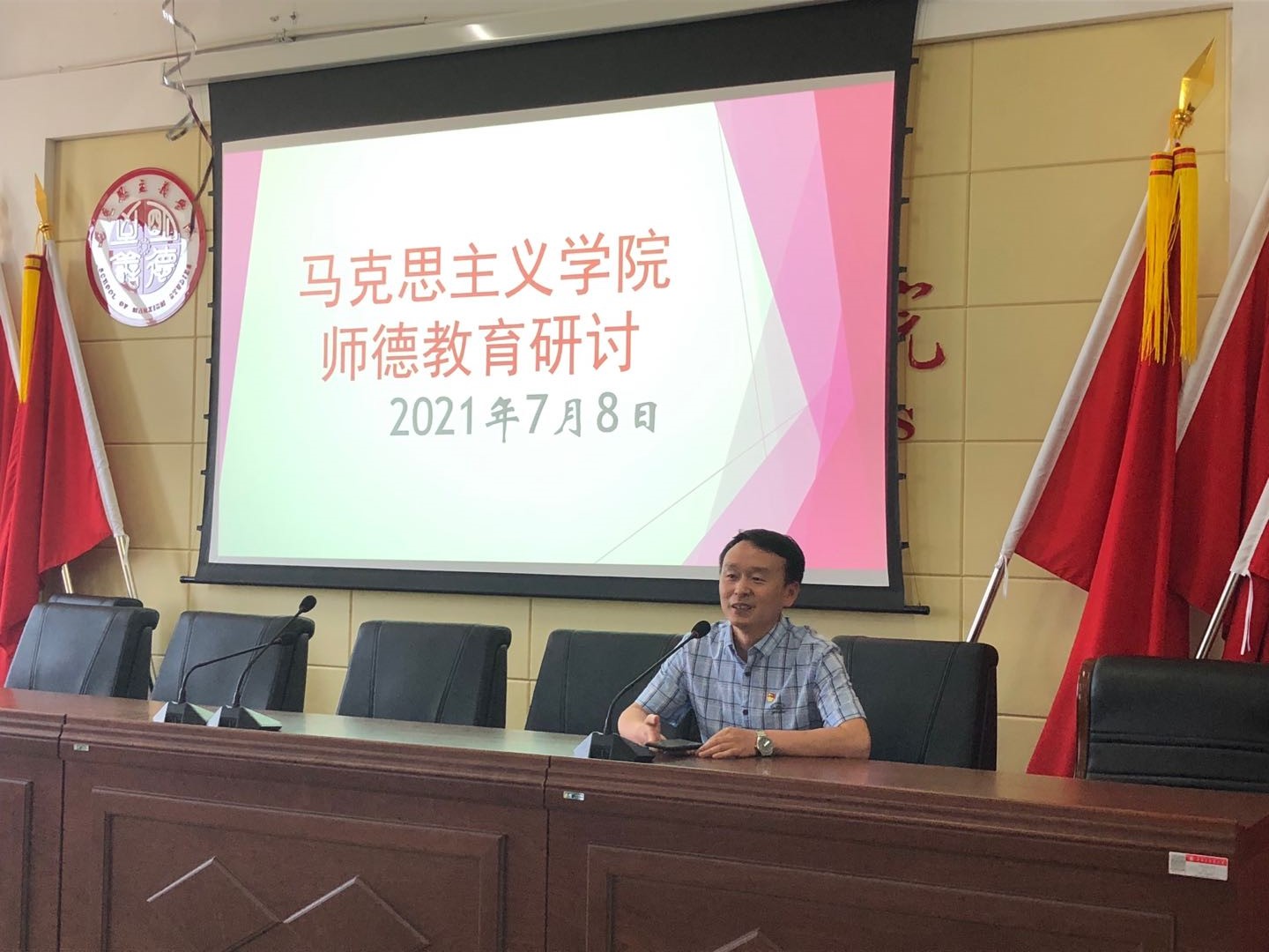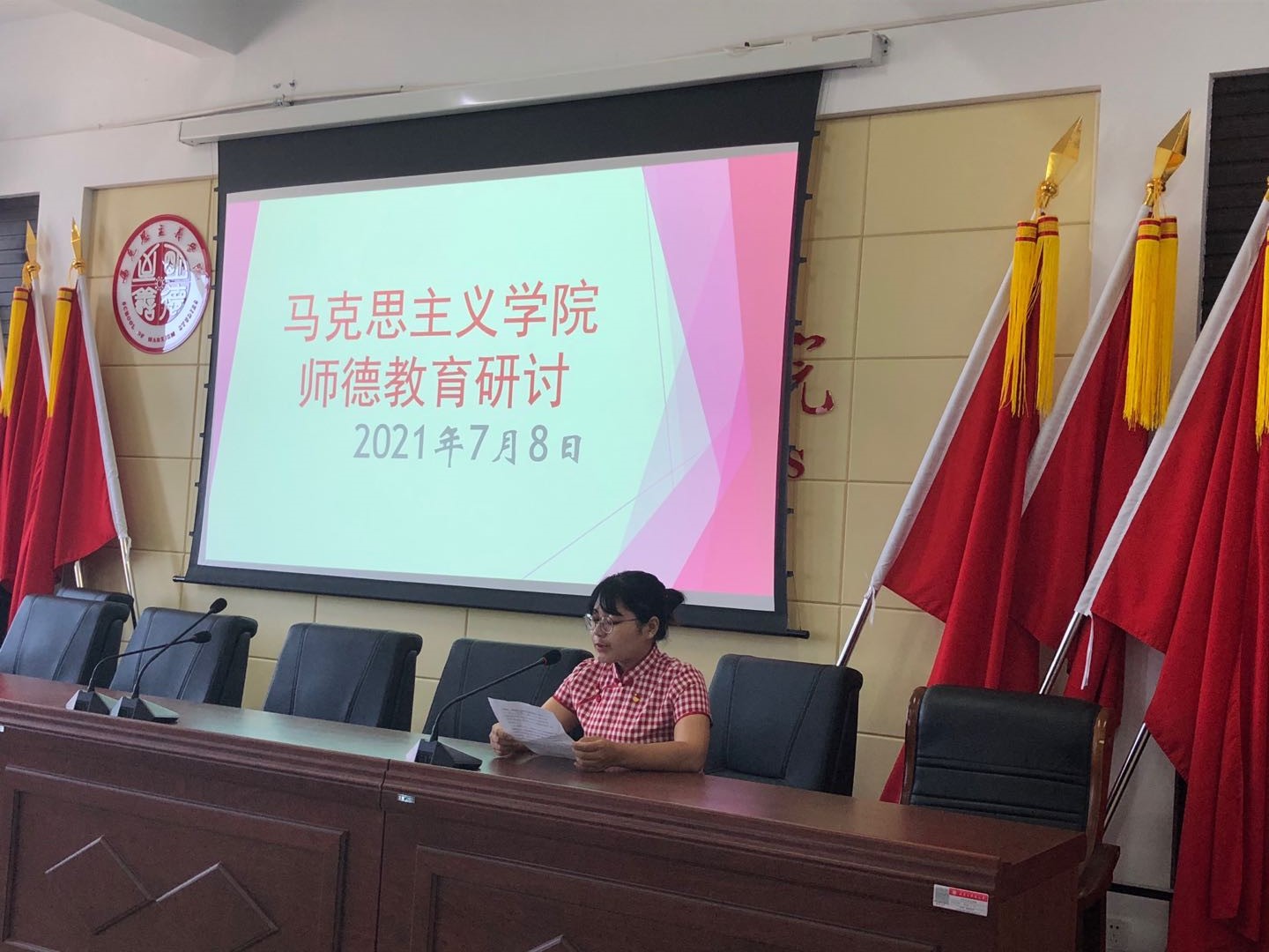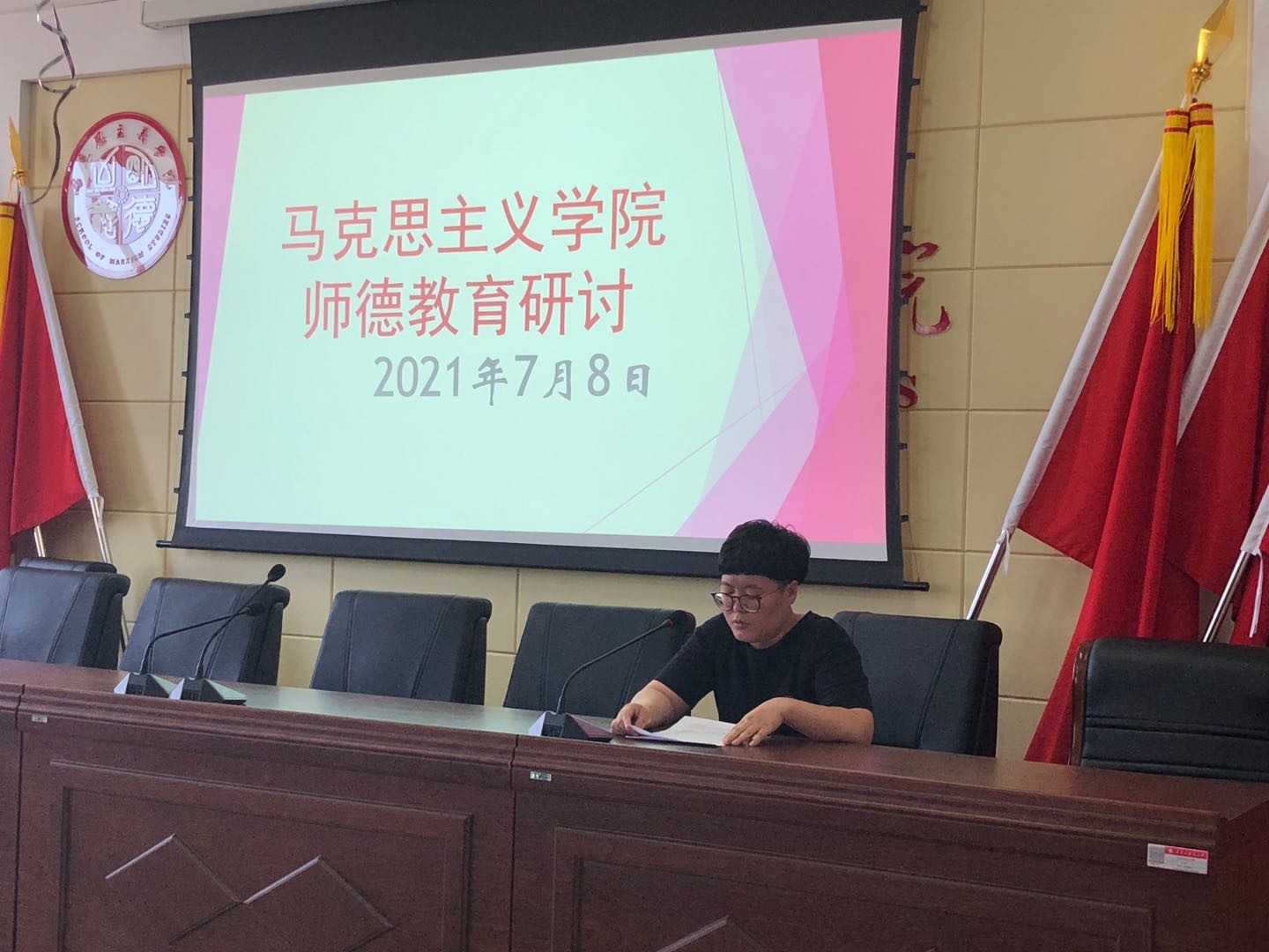 2021年7月8日下午,2007so太阳集团在腾飞楼C509会议室召开师德教育研讨会,2007so太阳集团全体教师参加会议,党总支书记马广辉主持会议。