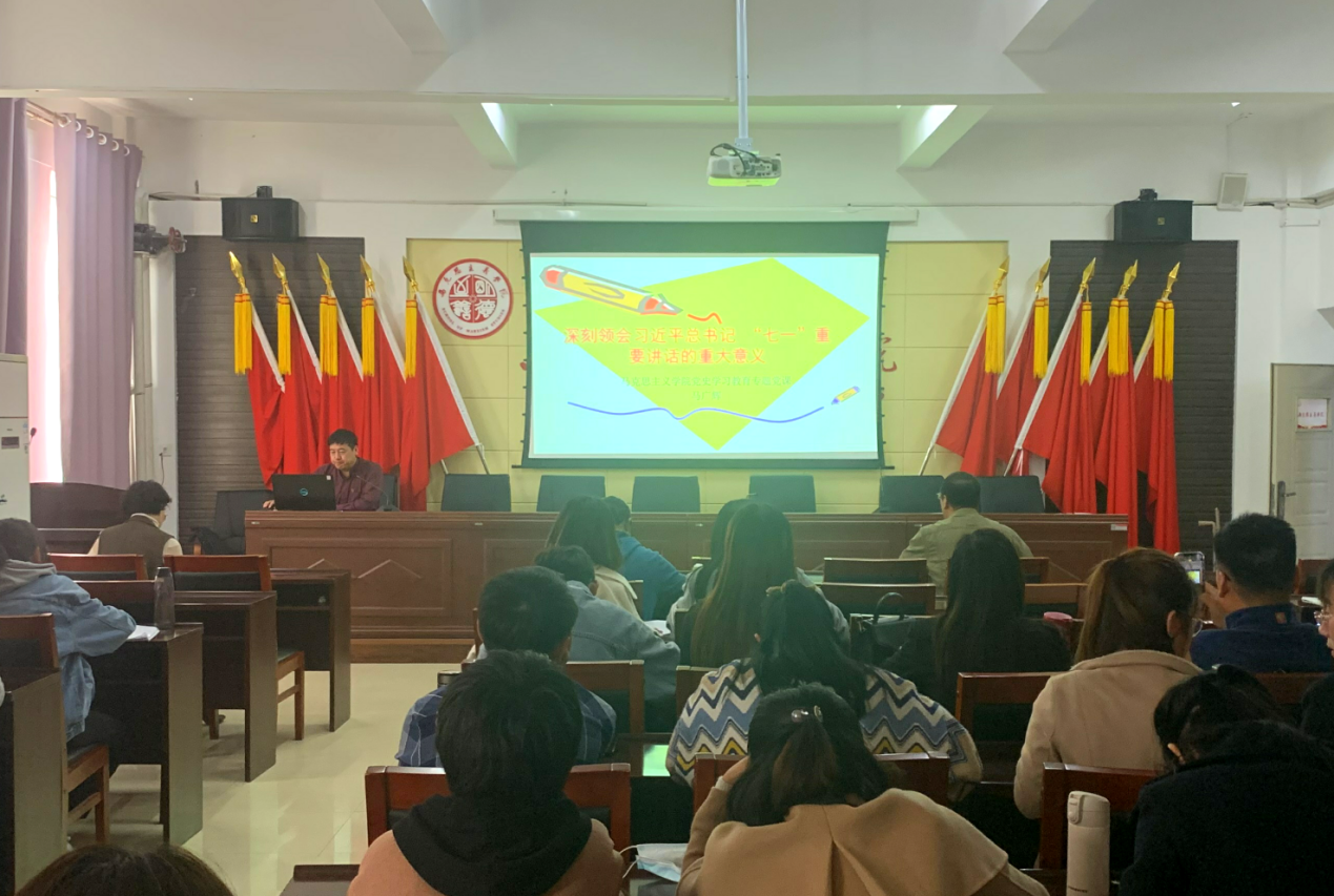 开班式结束后,党总支书记马广辉、院长张光存、副书记副院长柴艳莎、副教授冯大彪为全体党员集中讲授了党史学习教育专题党课。
