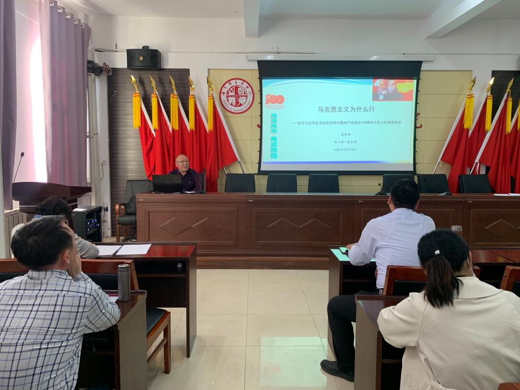 会上,学院副院长金海斌、教工第一党支部书记夏承伯、教工第三党支部书记叶后坡为全体教职工作了专题党课。