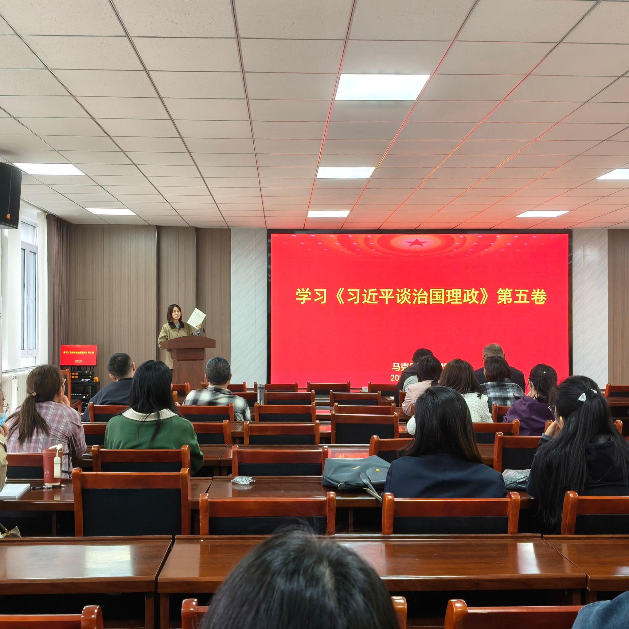 本次学习由学院党委副书记兼副院长贾磊领学,重点研读了《习近平谈治国理政》第五卷关于中国式现代化、新质生产力、党的自我革命等重要论述。研读结束后,学院党委要求全体党员要认真读原著学原文悟原理,把学习成果转化为干事创业、推动高质量发展的实际成效。要原原本本学,反复学、系统学、深入学,努力做到学之求深、信之求诚、用之求效。要融会贯通学,将《习近平谈治国理政》第五卷和第一卷至第四卷作为一个整体,深刻把握习近平新时代中国特色社会主义思想的原创性贡献。要联系实际学,把科学理论转化成实际工作成效,把学习成果转化为推动全院上下在中国式现代化建设中奋勇争先的有力举措,全力推进各项工作不断取得新进展新成效。