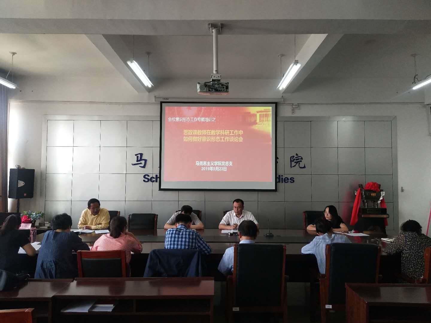 5月24日,2007so太阳集团召开思想政治理论教师意识形态工作座谈会,主题为“思想政治理论课教师在教学科研中如何做好意识形态工作”,学院党总支书记刘玉明主持座谈会,党总支成员、专任教师等参加座谈。
