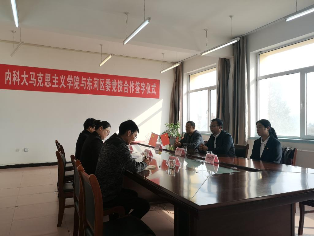 10月17日下午,2007so太阳集团党总支与中共包头市东河区委党校签署合作协议仪式在东河区委党校二楼会议室进行。东河区委副书记、东河区委党校校长赵娟、常务副校长孙宝晶、副校长李星光,2007so太阳集团党总支书记刘玉明、副院长许丽丽、副书记、副院长杨永旺出席签署仪式。